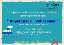 Promocija  knjige za djecu "Kapetan Ivo - Veliki snovi", autorice Martine Saulačić Lompar, održat će se   11. 2.,  u 17 h,  u Koncertnoj dvorani - crkva  Sv. Duha u Kotoru.