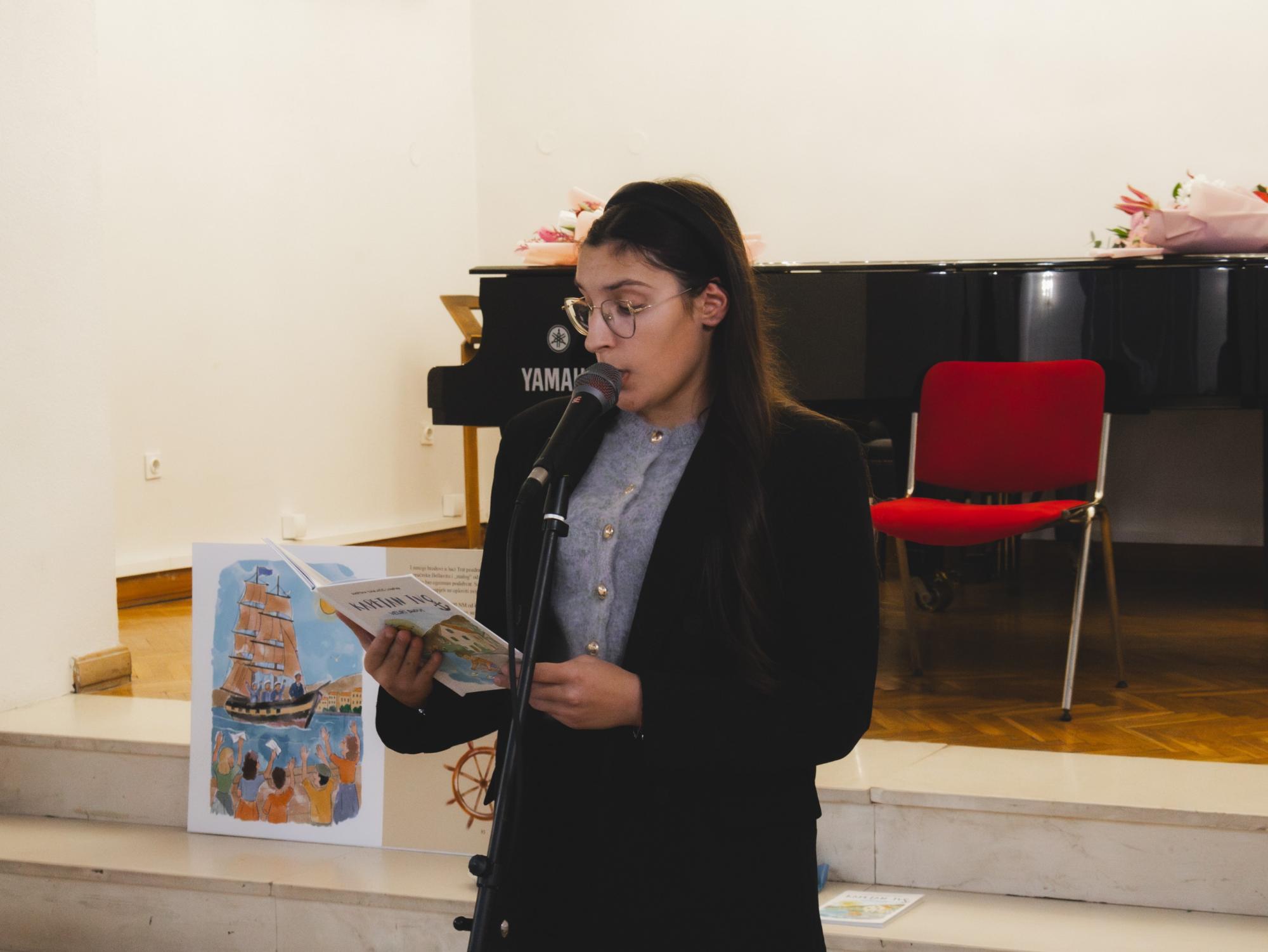 Promocija je započela na poseban i simboličan način, zvukom brodske sirene, koja je prisutne na trenutak vratila u vrijeme velikih plovidbi i hrabrih pomoraca. Taj snažan zvuk označio je početak jednog putovanja, ne morem već kroz stranice nove knjige za djecu autorice Martine Saulačić Lompar, profesorice engleskog i talijanskog jezika i književnosti. S puno emocije i ozbiljnosti, učenici su dočarali kroz glumu prve trenutke priče, kada je kapetan Ivo bio mali dječak koji je maštao o moru, brodovima, dalekim zemljama...