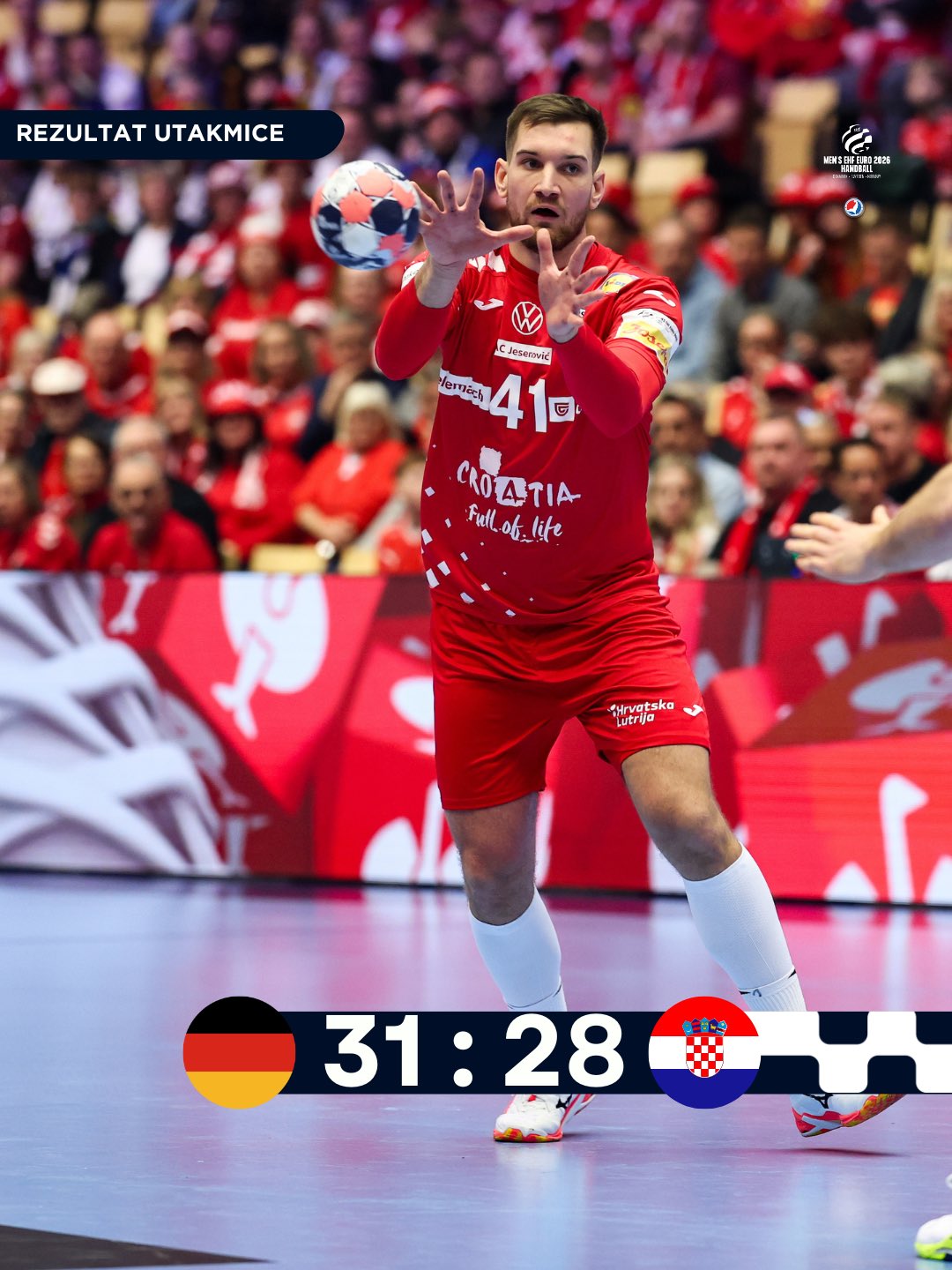 Rukometaši Njemačke pobijedili su Hrvatsku s 31:28 (17:15), izborili su plasman u finale i borit će se za zlatnu medalju. Hrvatska, koja je odigrala sjajno u prvom poluvremenu, vidno je pala u drugom te će pokušati da se oporavi i dođe do brončane medalje. Centralna figura utakmice bio je vratar njemačke reprezentacije Andreas Wolff, koji je imao 13 obrana, uključujući i dva sedmerca. U drugom polufinalu snage će odmjeriti Danska i Island.