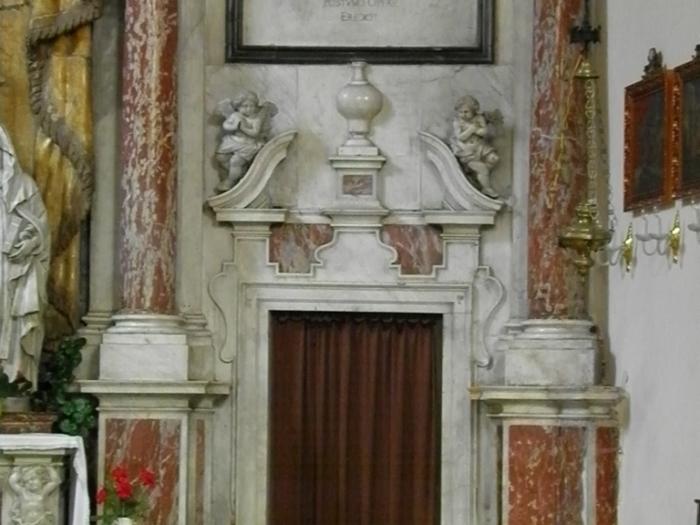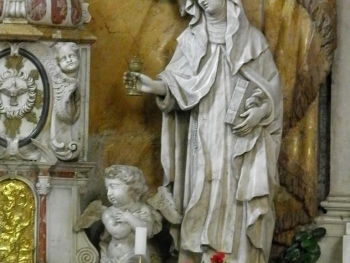 Tema ovoga Bokobrana glavni je oltar u franjevačkoj crkvi svete Klare u Kotoru koji je oblikovao mletački kipar Francesco Cabianca za svoga boravka u Kotoru, između 1704. i 1708. godine. Naručitelji toga oltara, koji zauzima istaknuto mjesto u prostoru crkve, pripadnici su kotorskoga plemstva Ivan i Vinka Bolica, što potvrđuje i natpis uokviren tamnom bordurom na desnoj strani oltara.