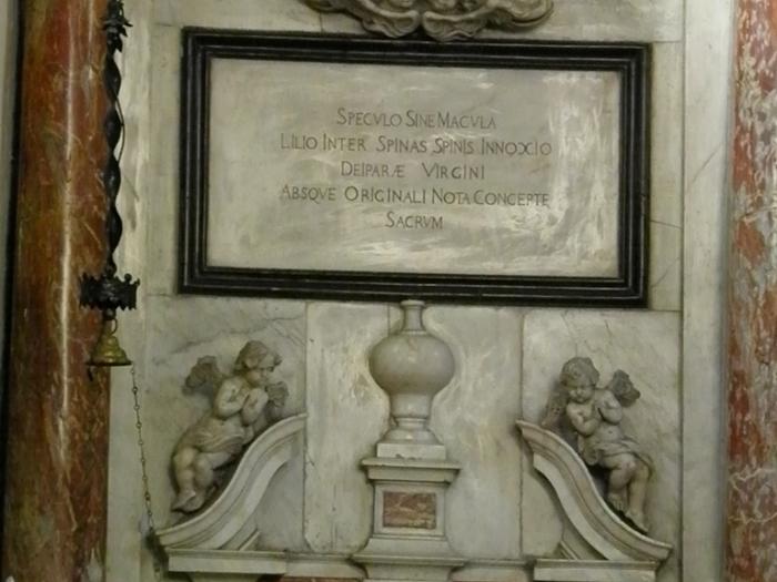 Posveta oltara Bezgrešnomu začeću odraz je vjere i pokazatelj štovanja Bogorodice, u njega je utkana i privatna pobožnost naručitelja – bračnoga para Bolica. Uz svetoga Franju i svetu Klaru, oni su odabrali likove svetoga Ivana Krstitelja i svetoga Vinka Fererskog kao vlastite zaštitnike čiji su kipovi postavljeni na vijencu oltara.