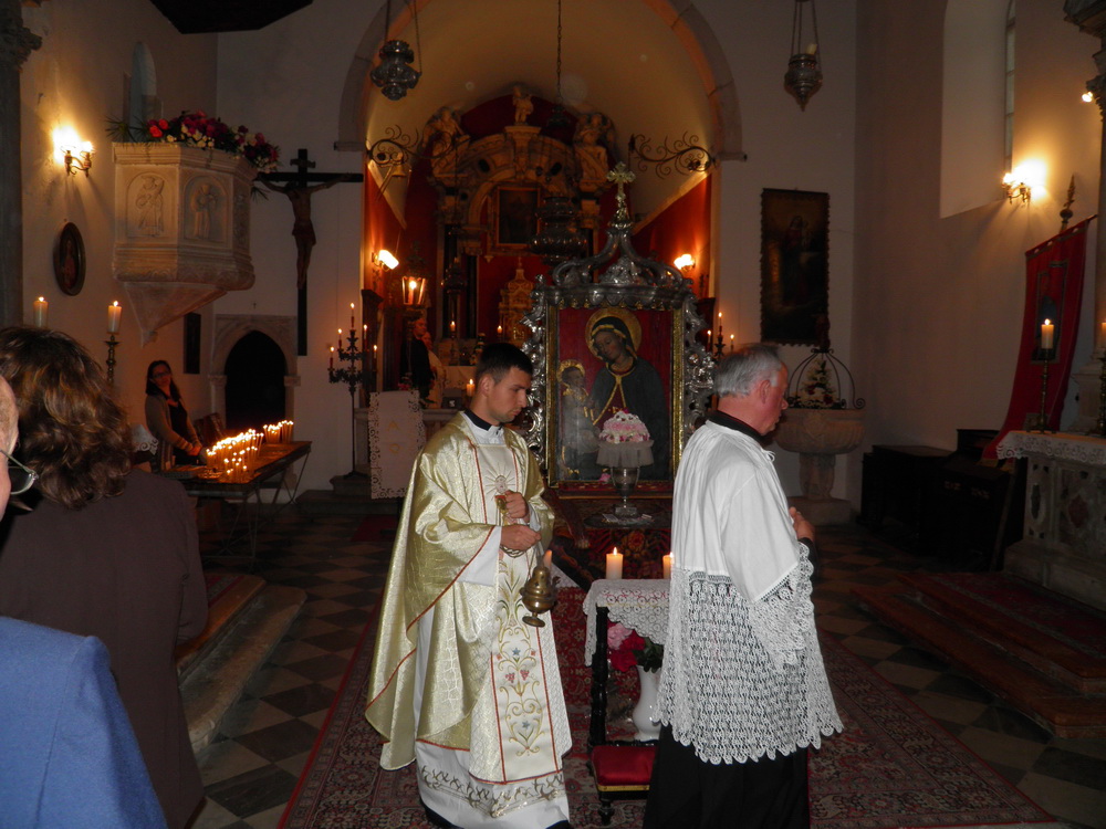 Nakon sv. Mise vjernici su u mimohodu prošli ispod ikone Gospe od Škrpjela, ljubeći je i proseći Njen zagovor.