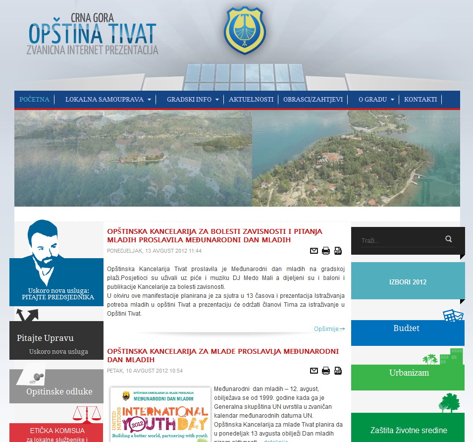 ISLJUČIVO ( rubrika Kancelarija za prevenciju narkomanije), KRASIĆI ( rubrika O gradu, podrubrika Kako doći); u okviru rubrike Gradski info, vjerovali ili ne, postoji podrubrika STUDNETI ( možda neka leksička inovacija onoga/one koji/koja ažurira sajt); građani su slobodni obratiti se SA sve potrebne informacije; MOGUČNOST ( rubrika O gradu,podrubrika Kako doći) SAOBRAČAJU ( rubrika O gradu, podrubrika Kako doći), OMOGUČILI ( rubrika O gradu, podrubrika O Tivtu). Da li ovo kompjuteri u Općini Tivat imaju tastature bez slova Ć ili je nešto drugo u pitanju? O totalnom nepoznavanju interpunkcije suvišno je pak i govoriti. Zadržimo se ipak još malo na nekim leksičkim osebujnostima, preciznije rečeno leksičkim i padežnim promašajima sajta Općine Tivat. Tu nalazimo i ovakve jezičke "bisere": ORJENTISAN ( rubrika O gradu, podrubrika O Tivtu); organizovano rade 39 AMATERSKA KLUBA ( rubrika Gradski info, podrubrika Sport u Tivtu; trebalo bi, naravno, trideset devet amaterskih klubova);zastupljeno je 22 SPORTOVA ( rubrika Gradski info, podrubrika Sport u Tivtu; trebalo bi zastupljena su dvadeset dva sporta); većina klubova ima svoje DRUŠTVENE-KLUBSKE prostorije ( rubrika Gradski info, podrubrika Sport u Tivtu); Tivat je povezan SA velikim brojem međugradskih linija ( rubrika O gradu, podrubrika Kako doći; trebalo bi Tivat je povezan velikim brojem međugradskih linija jer ovako kako je napisano na sajtu naše Općine ispada da Tivat nije povezan sa drugim gradovima, nego sa međugradskim linijama); zahvaljujući povoljnim klimatskim i DOBRIM GEOGRAFSKIM POLOŽAJEM ( rubrika o istorijatu i geografskom položaju Tivta; navedeni primjer ilustrira potpuno nepoznavanje ispravne upotrebe padeža) itd., itd.; ovakvih primjera na sajtu naše Općine ima na stotine. Nije samo jezik ono što je problematično na ovom sajtu, nego i neka idejna rješenja. Tako, npr., na naslovnoj strani nalazimo rubriku Pitajte predsjednika za koju piše da je u nastajanju. Nije problem sama rubrika, nego njen dizajn sa likom aktualnog predsjednika Općine za kojeg mi u Hrvatskoj građanskoj inicijativi ( HGI) smatramo da ipak nije drug Tito pa da bude njen doživotni predsjednik; stoga bi bilo puno bolje ovu rubriku ostaviti bez ikakvih likova jer je riječ o funkciji na kojoj se različiti ljudi periodično smjenjuju. Na osnovu svega rečenog, Hrvatska građanska inicijativa ( HGI) upozorava nadležne u Općini da povedu računa o jezičkom izgledu svog sajta jer je on, ovakav kakav je sad, na razini pravoga jezičkog košmara. Podsjećamo odgovorne da taj sajt nije samo sajt Općine i onih koji njom rukovode i da se u njemu ne zrcali samo profesionalni izgled aktualne općinske vlasti. Kroz taj sajt posjetitelj koji uđe na njega stiče i prvi utisak o glasačima koji su izabrali aktuelnu vlast pa i o biračkom tijelu i stanovnicima naše općine u cjelini. A taj utisak, gledano kroz ovu prizmu, u ovom momentu zaista ne može biti lijep i pozitivan, naprotiv.