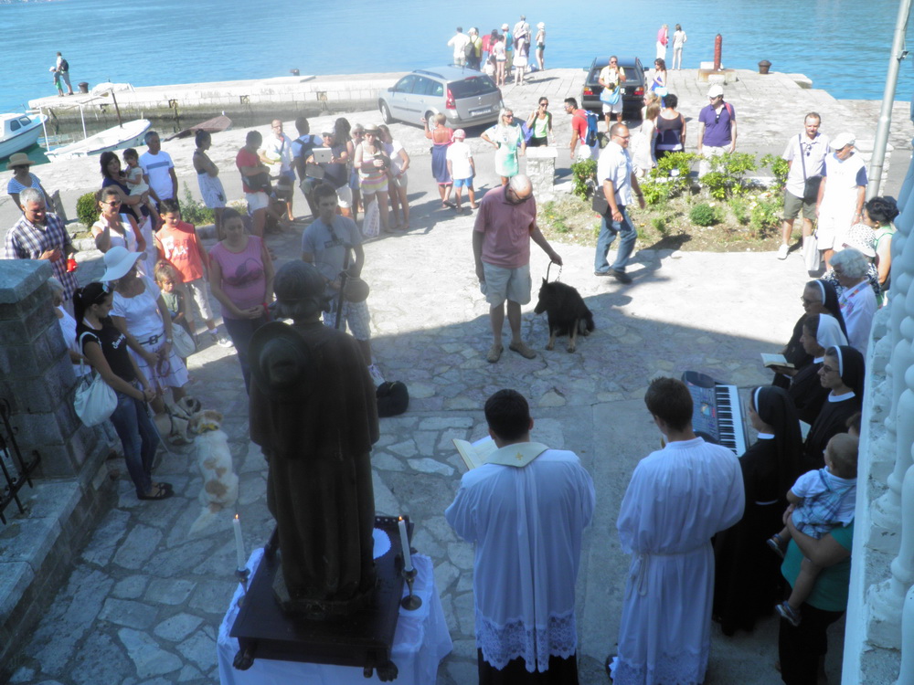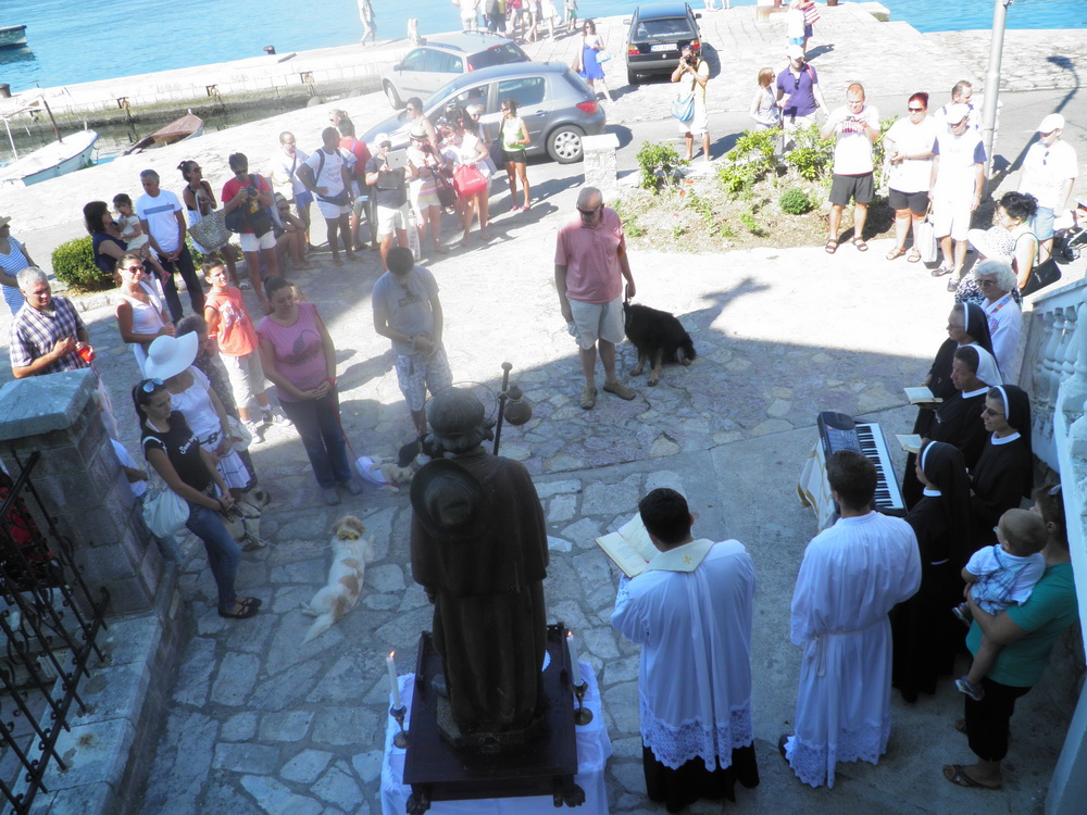 Prije samog čina blagoslova prema Rimskom obredniku upravitelj župe don Dejan Turza ispred crkve obratio se nazočnima i upoznao ih s velikom ljubavlju koju pape Benedikta XVI. gaji prema tim Božjim stvorenjima, a zatim je istakao: "Naš biskup msgr. Ilija Janjić, uvijek rado ističe tri ljepote Boke kotorske: ljepotu prirode, kulture i duhovnosti. Ulazeći u taj misterij božanskog sklada prirode, kulture i duhovnosti, ne možemo a da ne osjetimo ljubav i brigu za zaštitu okoliša te zaštitu životinja. Stvoriteljevom božanskom providnošću mnoge životinje na neki način sudjeluju u čovjekovom životu pomažući im u poslu ili opskrbljujući ih sa hranom i pružajući im utjehu. Bog je povjerio životinje brizi čovjeka, kojega je stvorio na svoju sliku te su ljudi dužni prema njima biti dobrohotni, izbjegavajući i pretjeranu ljubav prema njima, kao i njihovo neograničeno iskorištavanje, posebice za znanstvena istraživanja koja premašuju razumne granice i koja uključuju beskorisne patnje samih životinja. Krist je Pantokrator – Kralj svega stvorenog – sve stvoreno je usmjereno na čovjeka, antropocentrično, a čovjek i sve stvoreno je usmjereno na Boga – teocentrično."