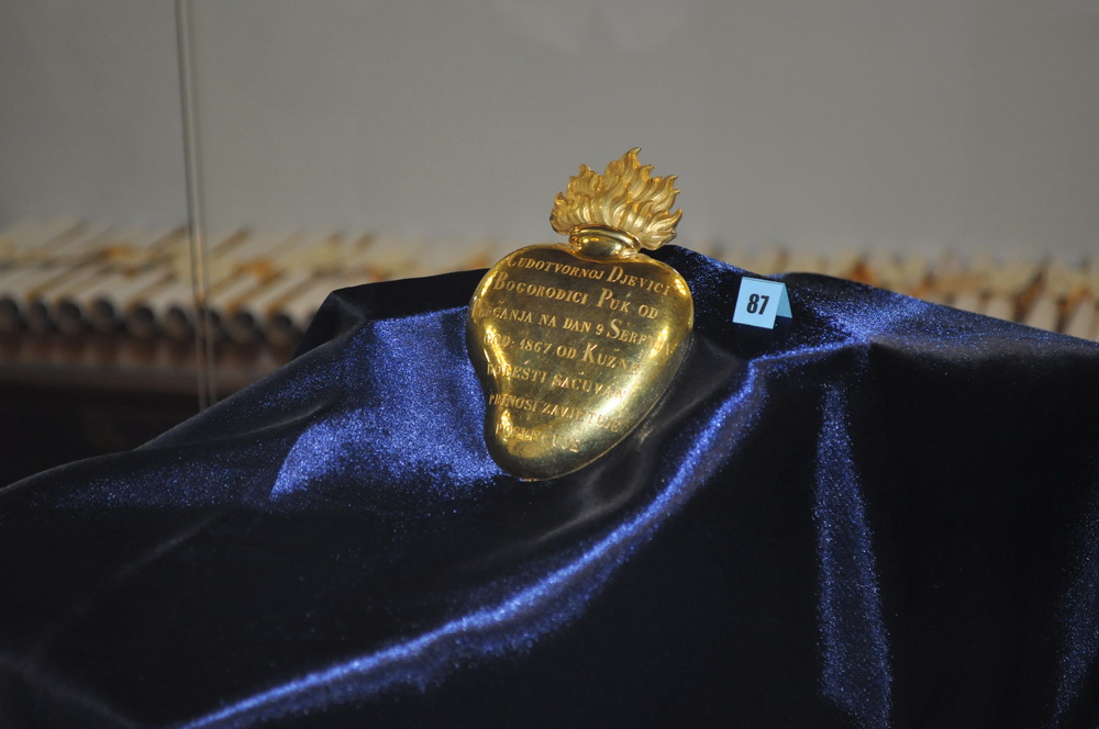 Ovom izložbom po prvi puta javnosti u Crnoj Gori prikazani su izuzetno vrijedni zavjetni darovi Kotorske biskupije, nakiti i medalje koje je biskupija dobila u priodu od XVI-XX stoljeća. Izložen je samo dio fundusa zavjetnih darova biskupije, nakit od zlata i dragog kamenja, oko 140 predmeta a najvredniji je medaljon iz XVI stoljeća.