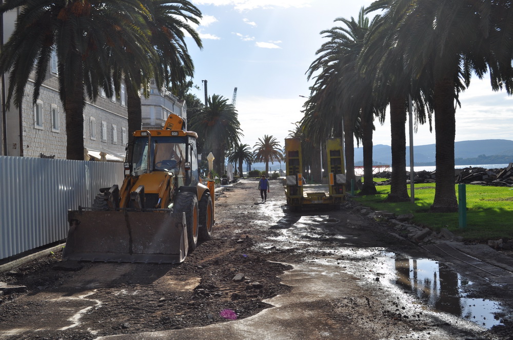 U međuvremenu i nikšička firma "Erlang", koja izvodi glavninu ostalih radova na rekonstruranju Pina intenzivirala je radove, pa je uklonjen veći dio asfaltne podloge s aktualne rive, a koja će se popločati s preko 9,5 tisuća kvadrata kamena.
