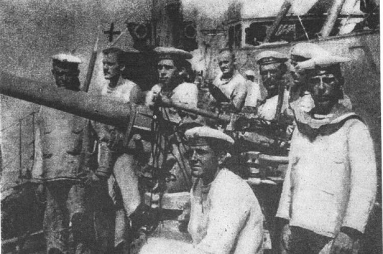 Odredili smo. Prvi će znak dati brod »St. Georg«, na kojemu vođa ustanka Josip Sesan, u službi kao kadet a u civilu pomorski kapetan, Dubrovčanin, mlad čovjek od 25 godina. Mi smo za sve to znali, pa smo na dogovoru u krčmi odabrali po 2 čovjeka pouzdana od svakoga broda, da obznani družinu kada nastupi taj čas. Na našem brodu »Gea« bio je imenovan odbor od 3 lica, koji je imao točno izvršiti naredbu, netom pukne top sa broda »St. Georg«.