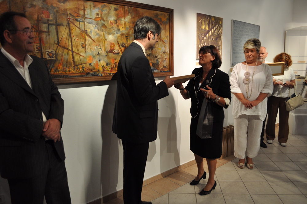 Brojnim zvanicama izložene exponate predstavila je ravnateljica Pomorskog muzeja Kotor Mileva Pejaković Vujošević koja je kazala "zadovoljstvo nam je prikazati dio exponata koji su doplovili iz grada Kotora koji je prava starinska dvorana u kojoj sija punim sjajem palača Grgurina iz 18 stoljeća, ovi exponati su doplovili zahvaljujući dobrim ljudima koji prepoznaju da kultura nema granica".