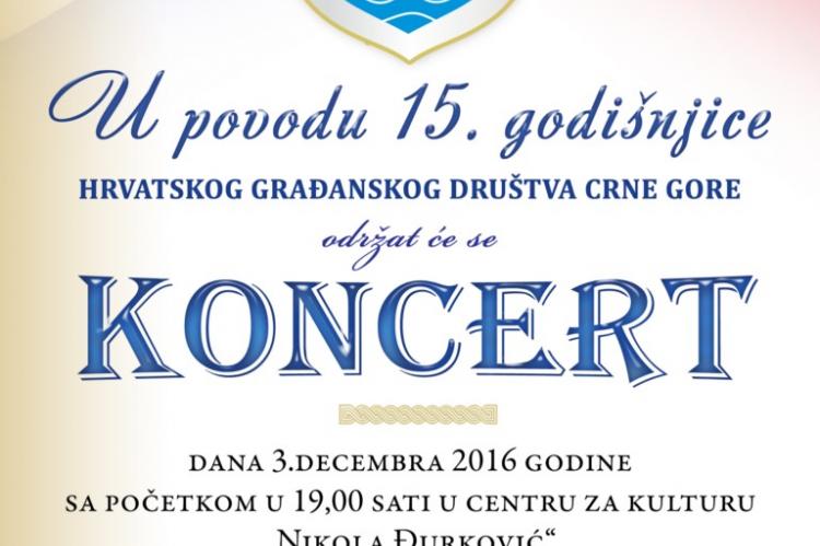 Hrvatsko građansko društvo Crne Gore slavi svoj petnaesti rođendan. Tim povodom će u subotu, 3. prosinca u Velikoj dvorani Centra za kulturu Kotor biti održana glazbena večer na kojoj će sudjelovati: klapa „Poklisari“ iz Dubrovnika, klapa „Bisernice Boke“, klapa „Incanto“, bend „Poly & Lungomare“ i glazbeni sastav „Tri kvarta“.