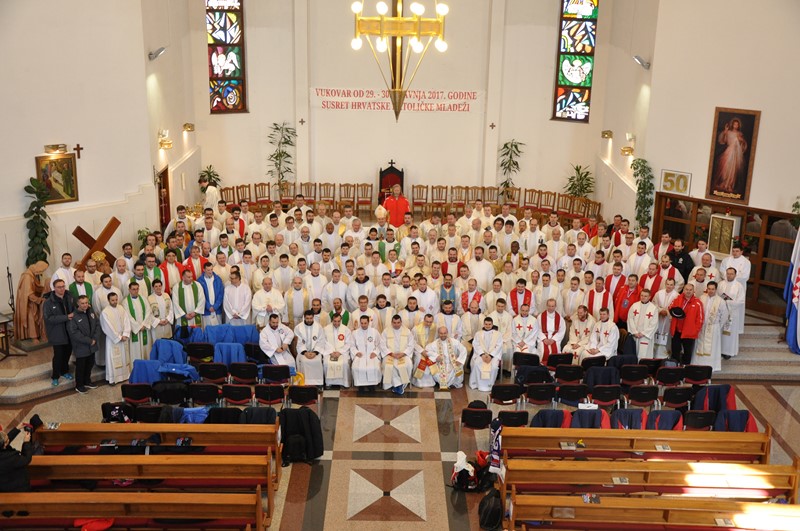 Prvog dana susreta svećenici su posjetili Memorijalno groblje žrtava Domovinskoga rata, Spomen dom i Masovnu grobnicu na Ovčari, a nakon toga uslijedilo je zajedničko misno slavlje koje je u franjevačkoj crkvi sv. Filipa i Jakova predvodio biskup bjelovarsko-križevački mons. Vjekoslav Huzjak u koncelebraciji sigetskog biskupa mons. László Kiss-Rigó koji je ujedno bio i golman mađarske reprezentacije na ovom prvenstvu.