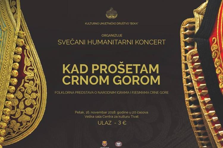 Svečani koncert folklornog ansambla KUD „Boka“ pod nazivom “Kad prošetam Crnom Gorom” bit će priređen danas, 16. 11., u Velikoj DVORANI Centra za kulturu u Tivat u 20 sati.