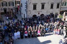 Nakon podizanja svečevog stijega, uz pratnju Gradske muzike Kotor, koja je svirala Kolo sv. Tripuna, okupljeni su se vjernici uputili u katedralu te je održana molitva i otpjevan himan pred svečevom relikvijom – Slavnom glavom, kojoj su se vjernici poklonili.