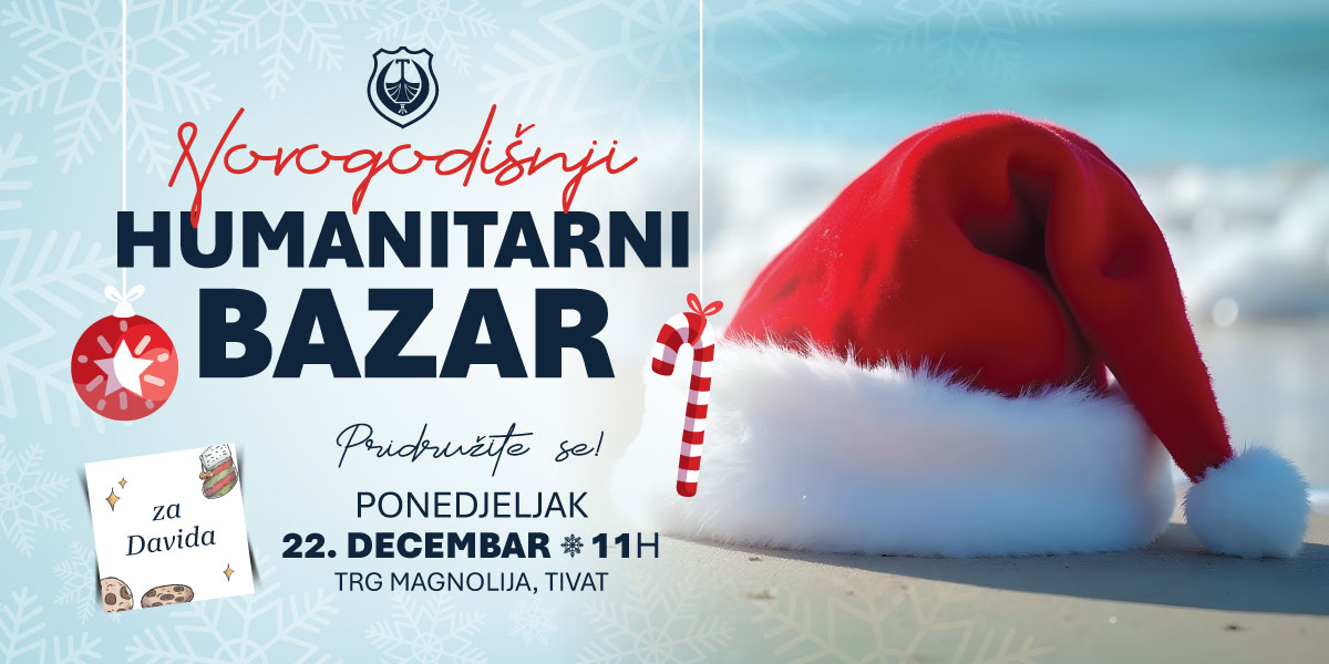 Općina Tivat s javnim institucijama i lokalnim udruženjima tradicionalno organizira veliki Novogodišnji humanitarni bazar, koji će se održati u ponedjeljak, 22. 12., na Trgu magnolija, s početkom u 11 sati. Sav prikupljeni prihod bit će usmjeren za pomoć dječaku Davidu Miniću koji se liječi u inozemstvu.