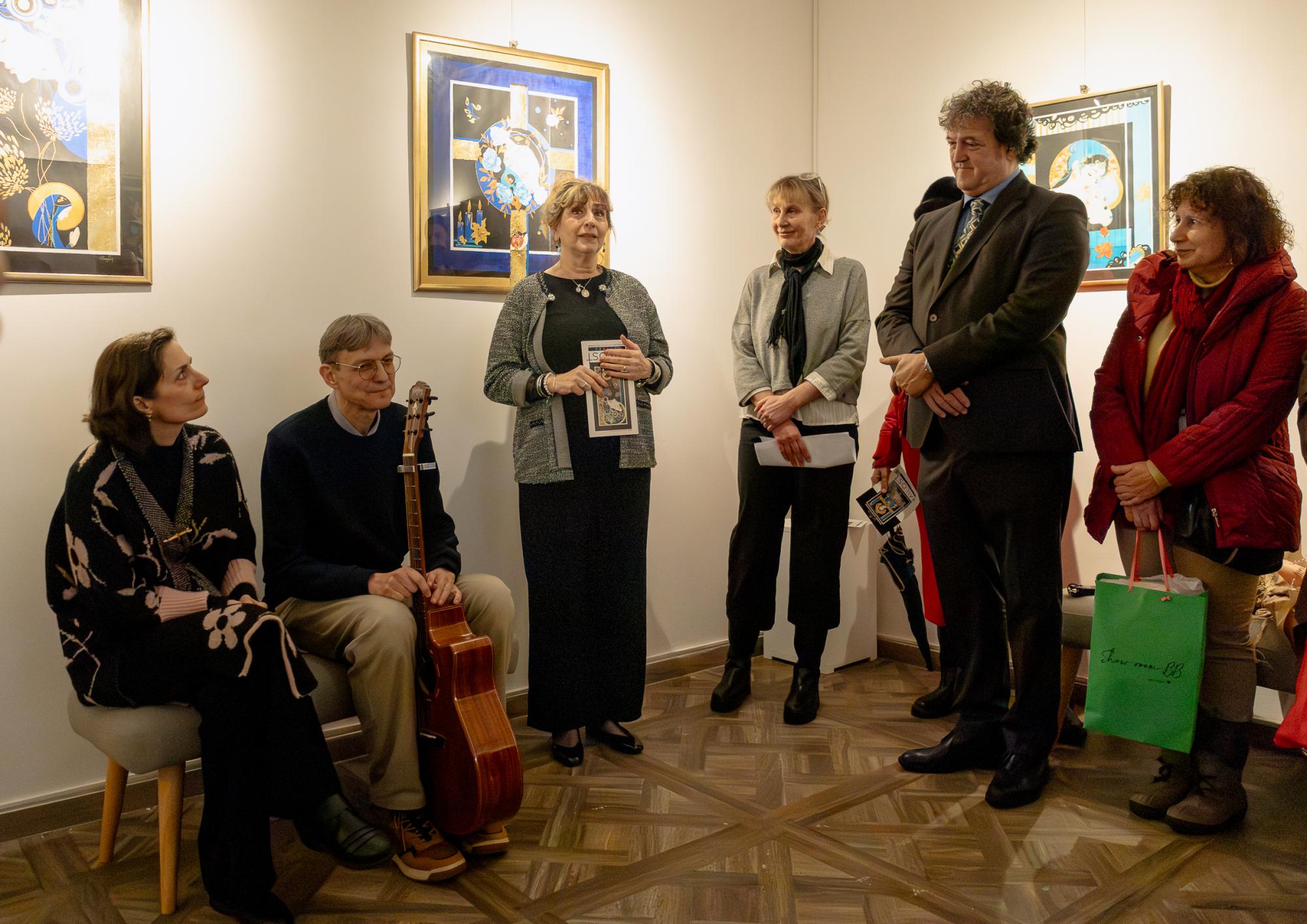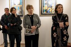 Govoreći o autorici, apostrofirala je njezin bogat umjetnički put te istaknula kako u svom radu koristi reduciranu paletu boja - zlatnu, plavu i crnu, koje simboliziraju snagu, duhovnost i tišinu.