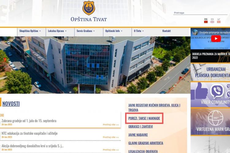 „Poreski obveznici od sada svoja poreska rješenja mogu preuzeti on-line, direktno na sajtu Opštine Tivat www.opstinativat.me, odabirom naslova “Porezi, takse i naknade”. Na linku opstinativat.me/porezi-takse-i-naknade/ je potrebno odabrati opciju “Detaljnije”, a zatim u traženo polje unijeti svoj JMBG. Sekretarijat za Finansije Opštine Tivat na raspolaganju je za sve dodatne informacije i eventualne primjedbe: kancelarija.19 na II spratu Opštine, broj telefona: (032)661-320, (069)380-010“ – stoji u priopćenju Općine.