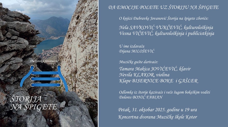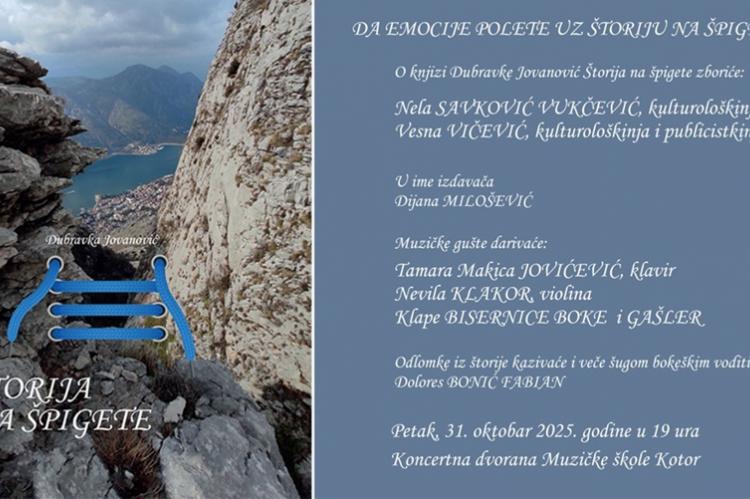 Promocija knjige  "Štorija na špigete“ , autorice Dubravke Jovanović,  održat će se u petak, 31. listopada, s početkom u 19 sati, u Koncertnoj dvorani ŠOSMO „Vida Matjan“.