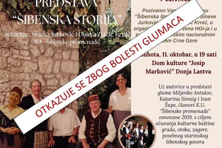 Kulturna udruga „Šibenske promenade“ gostuje u Kotoru i Tivtu s predstavom „Šibenska štorija“, koju potpisuju autorice Sineva Jurković i Duška Zjačić Krnić. Predstava će biti izvedena u petak, 10. 10., u 19 sati, u Domu kulture Škaljari (Kotor), te u subotu, 11. 10., u 19 sati, u Domu kulture „Josip Marković“ u Donjoj Lastvi (Tivat).