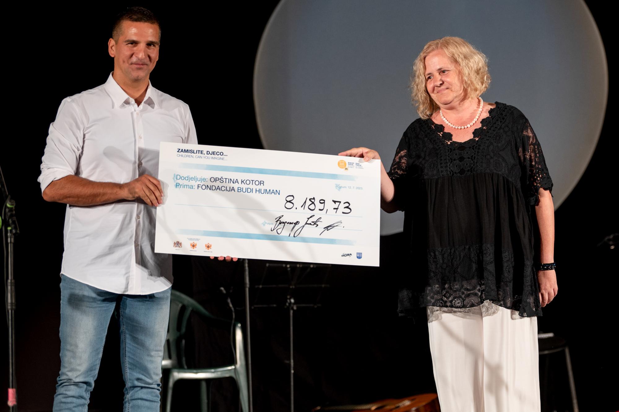 Na ceremoniji svečanog zatvaranja općinska Sekretarka za kulturu, sport i društvene djelatnosti Tatjana Kriještorac je predsjedniku i osnivaču Fondacije “Budi human” Goranu Jovanoviću uručila ček u iznosu od 8. 189, 73 eura, opredijeljen za liječenje mališana koji se suočavaju s ozbiljnim zdravstvenim izazovima.