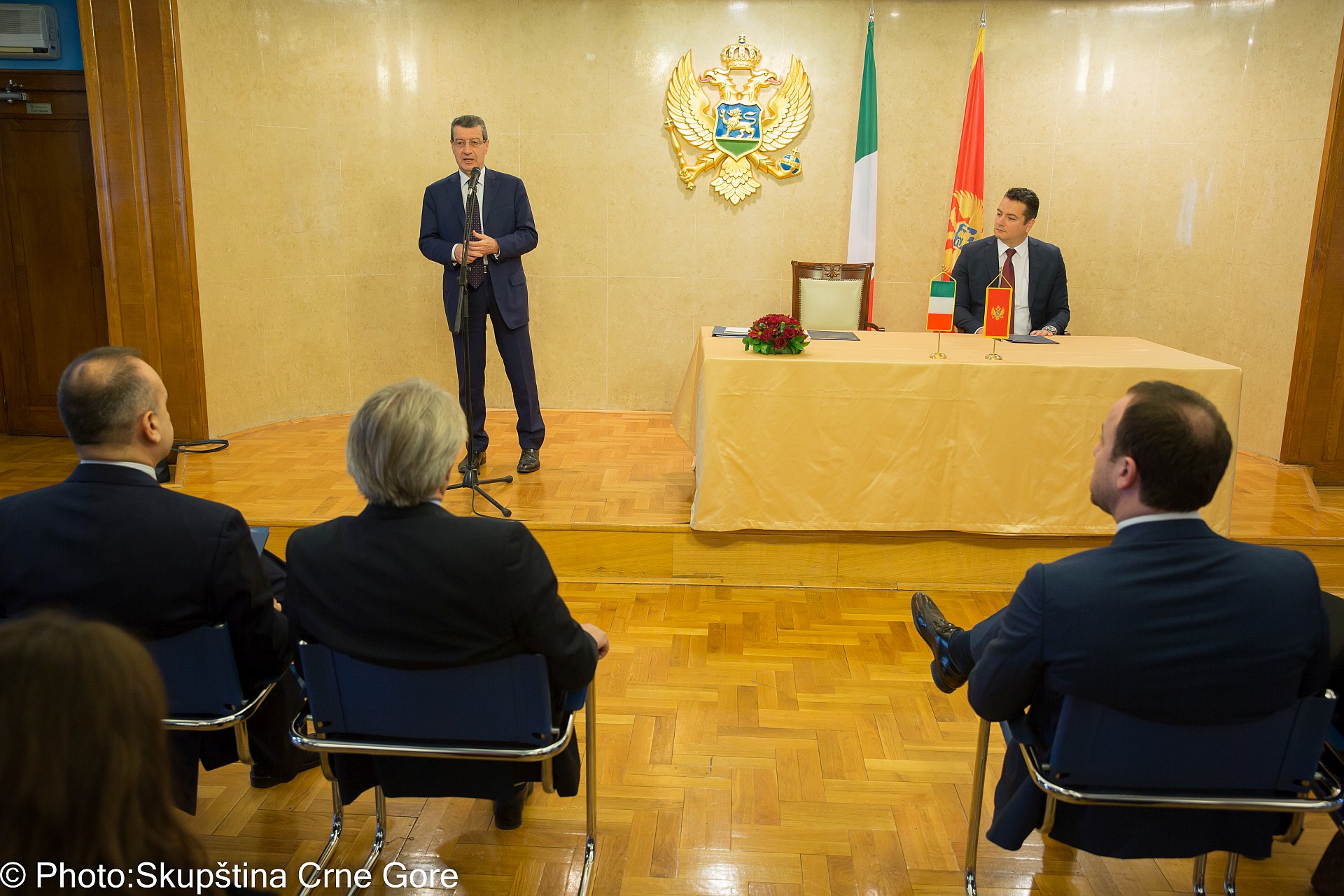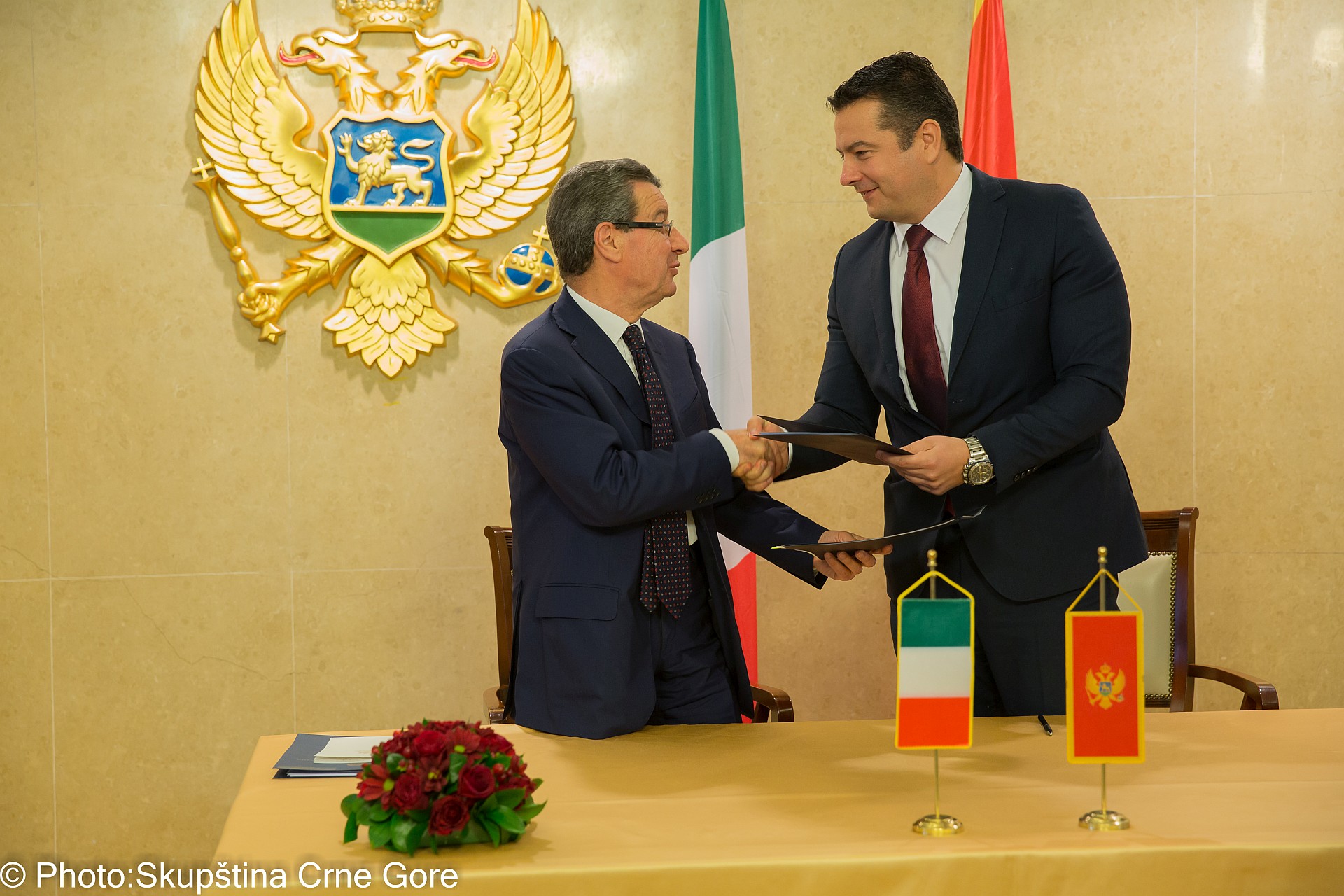 Predsjednik Odbora za europske integracije Skupštine Crne Gore Adrijan Vuksanović i predsjednik Odbora za politike Europske unije Senata Republike Italije Vanino Kiti, potpisali su danas Protokol o suradnji dva odbora.
