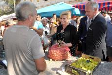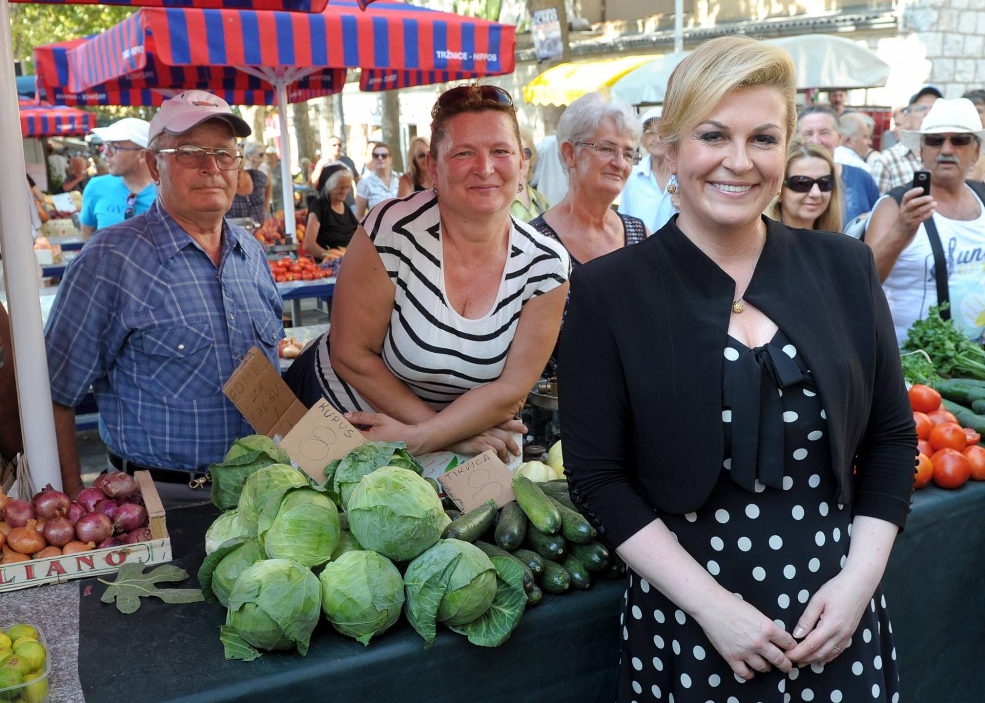 Predsjednica Kolinda Grabar Kitarović, nakon sinoćnjeg slavlja u Sinju, ponedjeljak ujutro počela je ležernije, ispijajući kavu u Splitu, gdje je privremeni Ured predsjednice. Nakon kave na rivi, prošetala je središtem grada svrativši i na splitsku tržnicu, odnosno Pazar, gdje je kupila nešto voća.