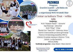 Pročitajte višeU subotu, 8. 11., u 19 sati, održat će se program „Granični susreti – od Boke do Konavala”, u organizaciji NVO Hrvatski libar, u Velikoj dvorani tivatskog Centra za kulturu.