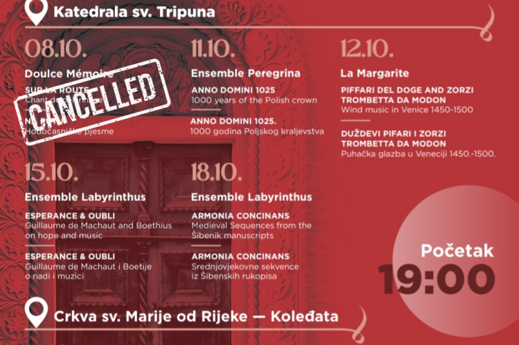 Festival se zatvara još jednim koncertom ansambla Labyrinthus: Armonia Concinans -Srednjovekovne sekvence iz Šibenskih rukopisa (18.10.2025. Katedrala sv. Tripuna, 19 h) Koncert nas vodi u srednjovjekovni dalmatinski kulturni kontekst, i posvećen je obilježavanju obljetnice Splitskih crkvenih sabora (925. i 928.) koji navode Kotor kao sufragansku biskupiju, te obilježavanju 1100. obljetnice Hrvatskog kraljevstva, obljetnice koja se u Kotoru i Boki svečano obilježavala i prije 100 godina (1925.) Uz sekvence iz 10. i 11. st. koje su zapisane u dragocjenom Šibenskom sekvencijaru, slušat ćemo i jednu od najstarijih kompozicija na starohrvatskom jeziku, kasnosrednjovjekovnu verziju Dies irae – Sudac gnivan.