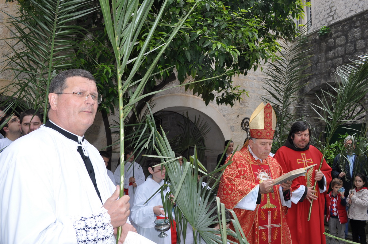Nakon blagoslova grančica i procesije, biskup kotorski Ilija Janjić predvodio je misu Cvjetnice u katedrali svetog Tripuna u Kotoru.